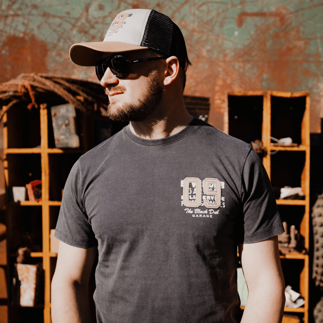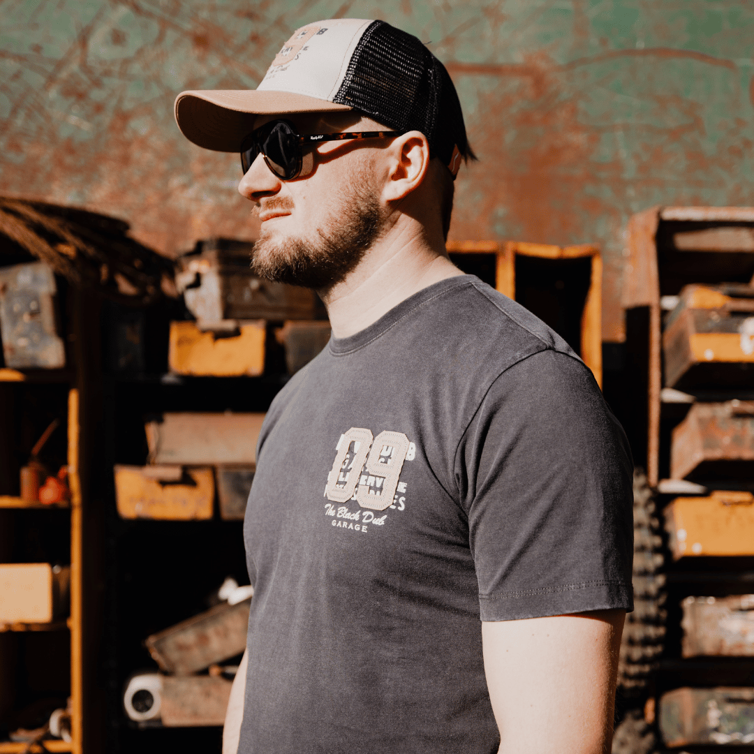 The Black Parts & Spares ‘09’ Tee is built for those who know that the best things take time. Part of our Collection 2.0 drop, this jet black tee has been acid washed over several days to create a lived-in, vintage look that feels like it’s been pulled straight from the workshop wall.