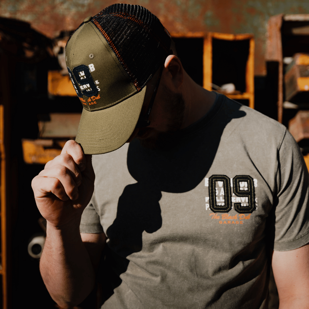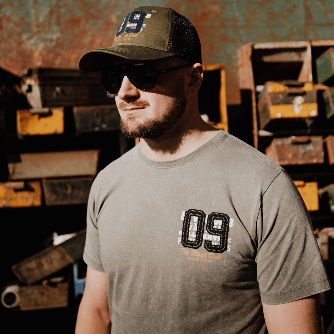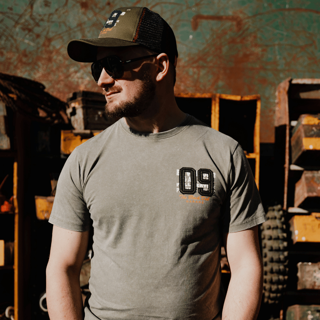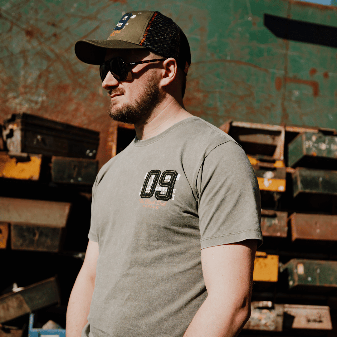 The Green Parts & Spares ‘09’ Tee is the kind of piece that doesn’t come around often. Built as part of our Collection 2.0 drop, this isn’t your average green tee — it’s been acid washed through a process that takes several days to perfect, giving each one a worn-in, road-hardened character from the start.