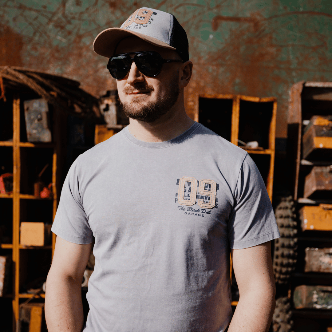 The Grey Parts & Spares ‘09’ Tee is a heavyweight from Collection 2.0 — built with character, crafted with care. Each tee is acid washed over several days to achieve a faded, worn-in finish that feels straight out of the pits.