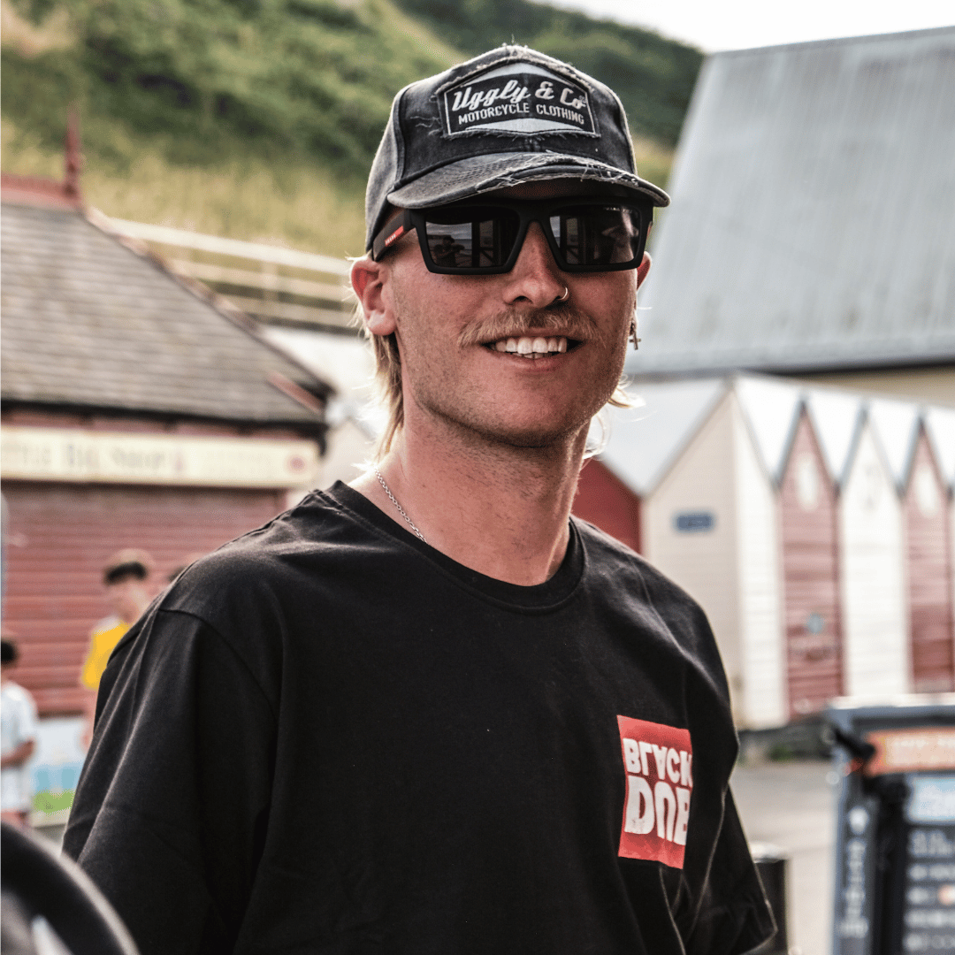 The design is inspired by vintage garage logos painted on the sides of black-walled buildings, capturing the essence of classic signage and marketing from years past. The bold red logo on the black tee stands out with a vibrant flair. True to the Black Dub range, it features a small orange tag of the signpost on the bottom of the tee and an orange neckline, a nod to its heritage as an iconic spot of the Isle of Man TT.
